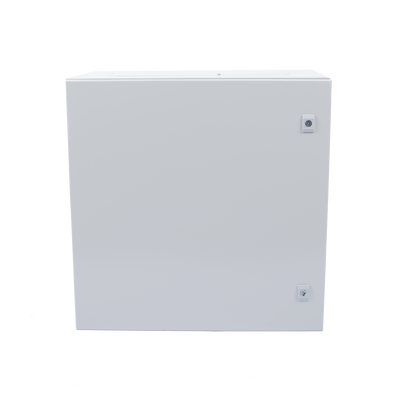 Gabinete de Acero IP66 Uso en Intemperie (600 x 600 x 300 mm) con Placa Trasera Interior Metálica y Compuerta Inferior Atornillable (Incluye Chapa y Llave T).