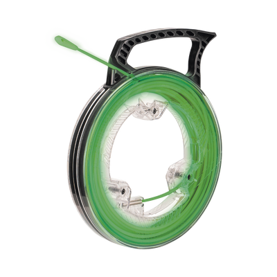 - Guía jalacables de 40' que cuenta con una exclusiva guía de fibra de vidrio que brilla en la oscuridad y punta de nylon