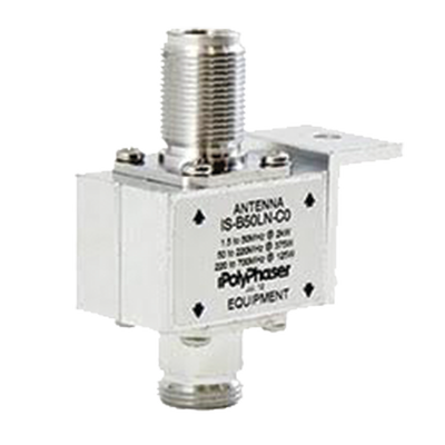 Montaje en mampara, bloqueador de corriente, simple transmisor y protector coaxial para rayos de 10MHZ a 1GHZ con conectores N hembra del lado de sobretensión y N hambra del lado de protección.